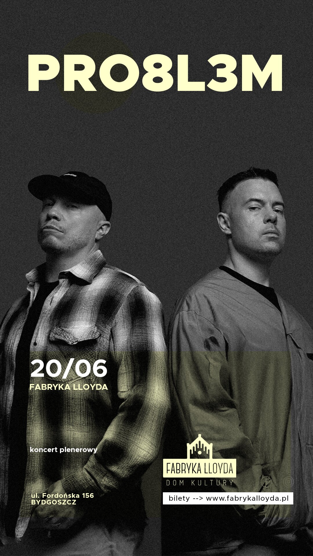 Już 20 czerwca zapraszamy na plenerowy koncert zespołu PRO8L3M na terenie Fabryki Lloyda, w Bydgoszczy!
